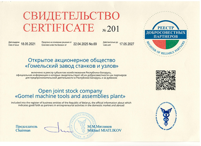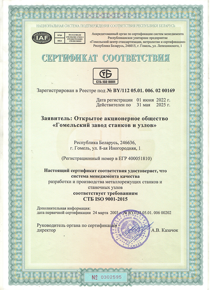 Все изделия завода сертифицированы по международной системе качества СТБ ISO 9001-2015 и соответствуют директивам Европейского Союза, что подтверждается маркировкой СЕ. Это дает уверенность нашим клиентам в том, что они получают продукцию, отвечающую самым высоким стандартам качества и безопасности.